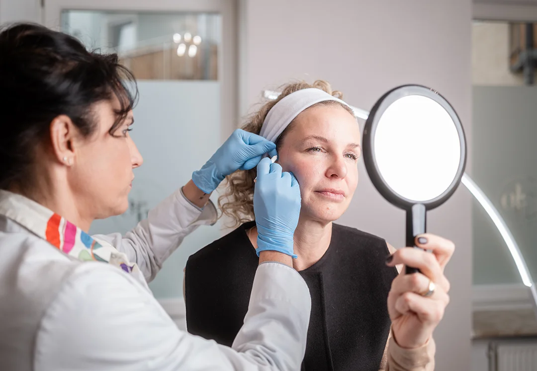 Unsere Spezialität in München: Wir kombinieren Zugfäden für den Lift-Effekt mit Mesofäden zur Hautverbesserung in einer Sitzung. So adressieren wir sowohl die Position des Gewebes als auch die Hautqualität.