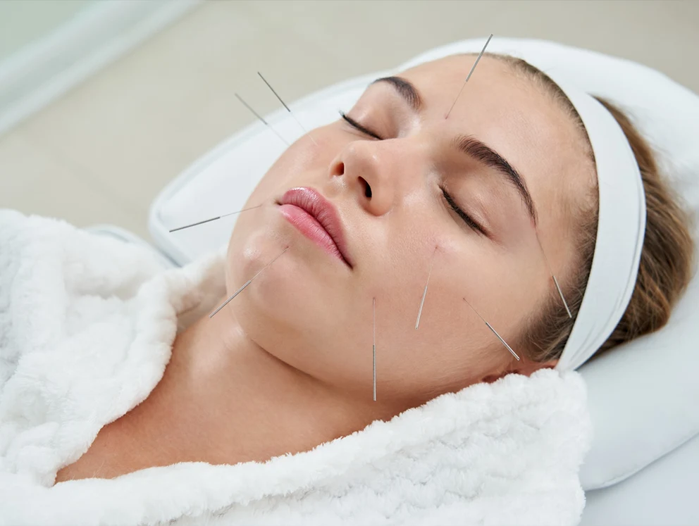 Wir nutzen eine Kombination aus ultra-feinen Nadeln für Falten („Intradermal-Nadeln“) und klassischen Punkten zur Muskelstraffung. Während der Einwirkzeit (ca. 20–30 Minuten) arbeitet Ihr Körper auf Hochtouren an der Regeneration, während Sie oft einschlafen oder tief ruhen.